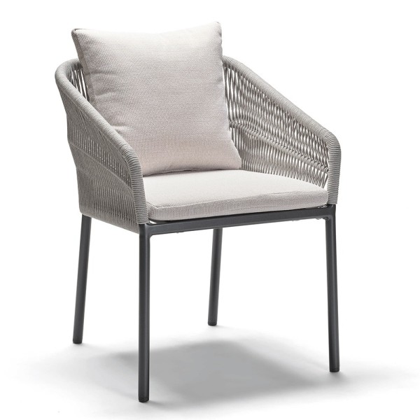 6x Stern Stapelsessel Jella Aluminium anthrazit matt Kordel Stone Kissenset 100% Polyacryl Vanilla