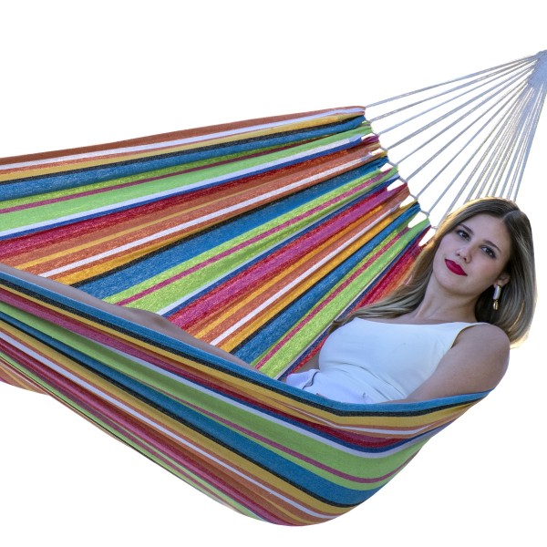 Super bequeme Hängematte aus einem weichen Baumwoll-Polyester-Gemisch, welcheer dank der hochqualitativen Verarbeitung auch bessonders reißfest ist und zu einer hohen Langlebigkeit führt.