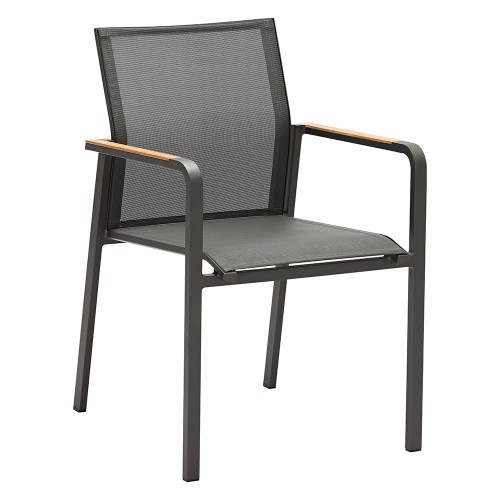 23. Zebra Stapelsessel Bee Alu-Rahmen pulverbeschichtet graphite, hochwertiges Textilen carbon grey, eigelassene Teakarmlehnen