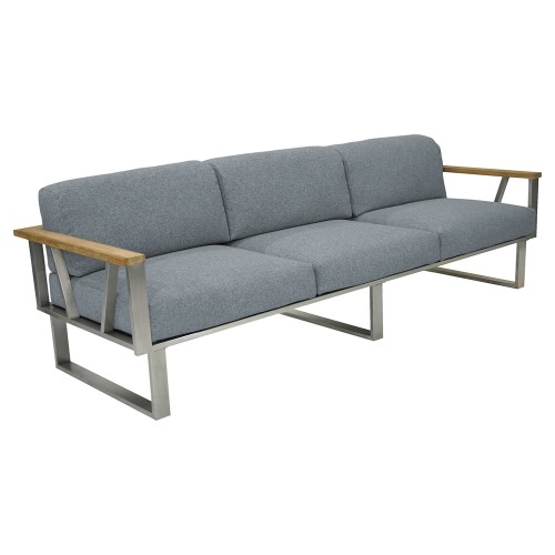 22. Zebra Belvedere 3-Sitzer Gestell Edelstahl mit Verstellmöglichkeit und Teakarmlehnen + Kissenset mit Bezug Tuva medium grey (inkl. Schutzhülle)