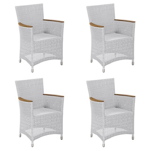 11. 4x Stern Stapelsessel Cardiff, Edelstahl mit Textilenbezug silbergrau und Teakarmlehnen