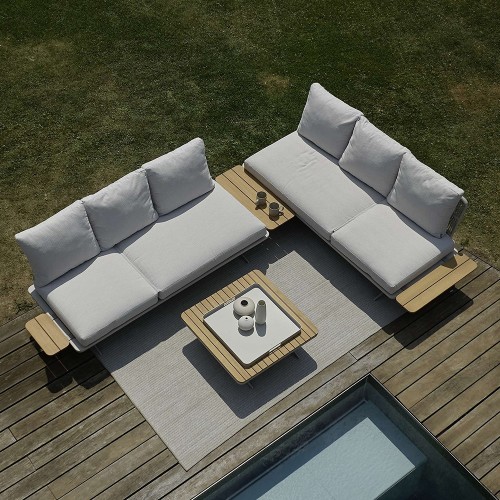 22. Stern Enya Loungeset 6-teilig Alu greige Rückenteile Kordel Vanilla mit Verbindungstisch, 2 Anstecktische und Lounge-Tisch