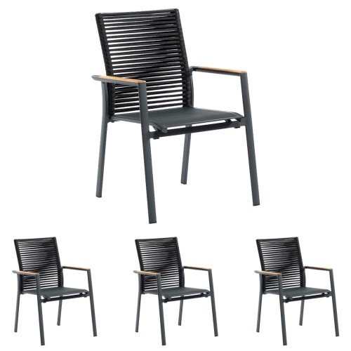 7. 4x Zebra Fly Rope Stapelsessel graphite Alu Textilen carbon grey