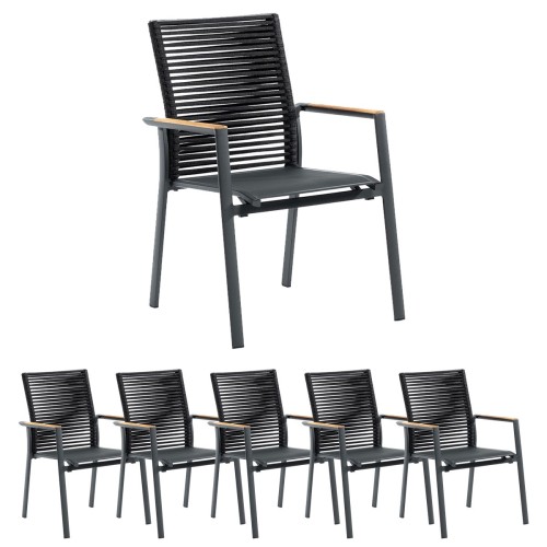 8. 6x Zebra Fly Rope Stapelsessel graphite Alu Textilen carbon grey