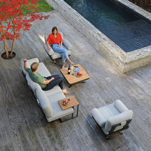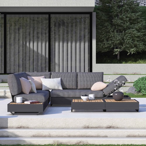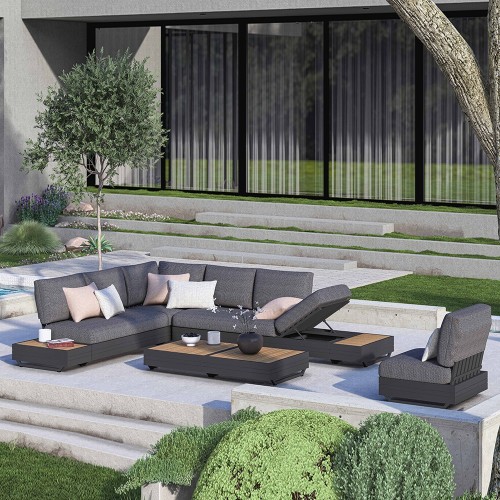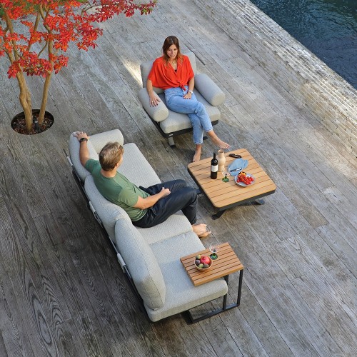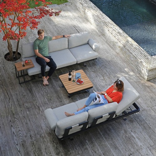 24. Stern Enya 5-teilig Alu Anthrazit matt Kordel Stone mit 2 Liegen Kissen perlgrau mit Anstecktisch und 2 Taro Beistelltische