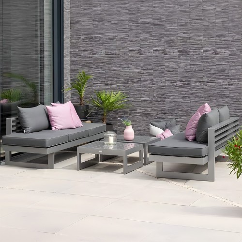 10. Stern New Holly Loungeset Aluminium graphit 4-teilig mit 2 Hocker