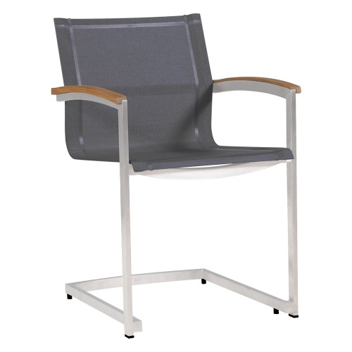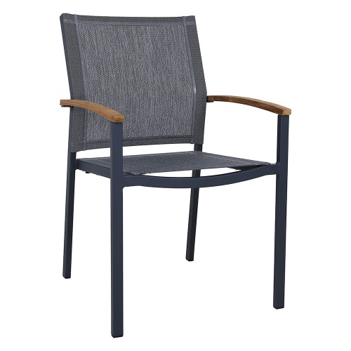3. Zebra Stapelsessel Fly, Aluminium graphit und Textilen carbon grey, Teakarmlehnen