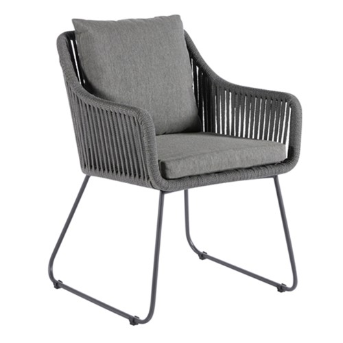 4. Diamond Garden Kos Stuhl - Dark Grey - Rope-Dunkelgrau/Edelstahl Dunkelgrau/incl, Sitz- und Rückenkissen