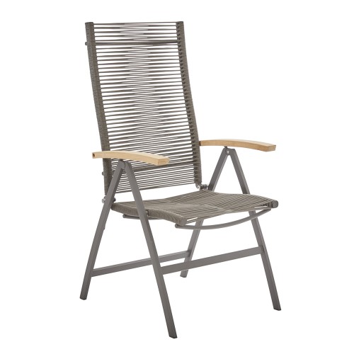 20. Diamond Garden Valencia Hochlehner - "Rope" / Edelstahl Dunkelgrau / Rope Grau / Armlehne Teak