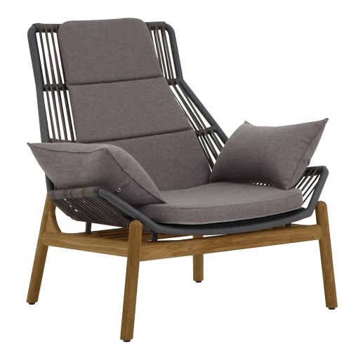 21. Zebra Quadux Alu Sessel, turmalin grey Aluminium graphite, Armlehnen recyceletes Teak, wasserdichtes Tuvatextil