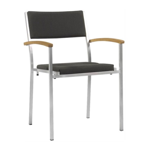 23. Zebra Quadux Stapelsessel Edelstahlgestell, AL recyceltes Teak, stapelbar, wasserdichtes Tuvatextil, turmalin grey