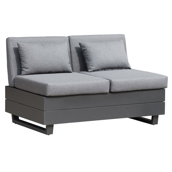 1x 2-Sitzer Sofa (130x75x70 cm), Aluminium in Graphitoptik, inkl. Tuva Dark Grey Kissen.