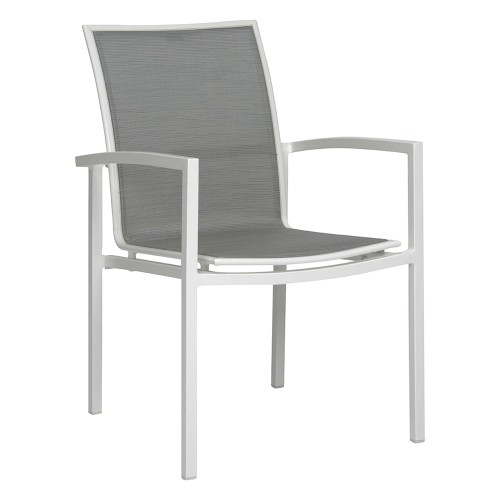 7. Stern CARDIFF Stapelsessel Edelstahl mit Textilenbezug silbergrau und Teakarmlehnen, extra hohe Rückenlehne