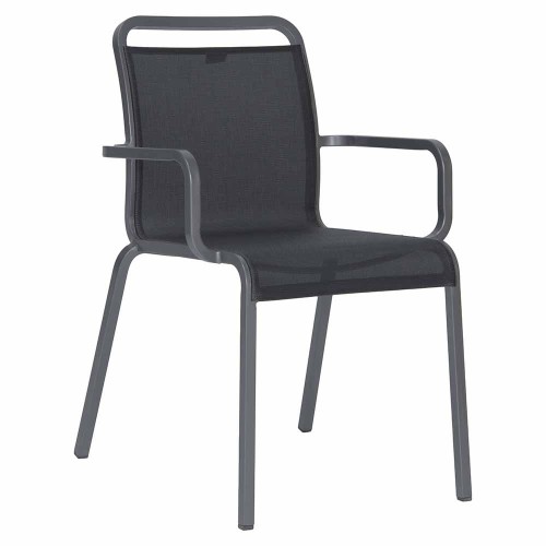2. Stern CARDIFF Stapelsessel Edelstahl mit Textilenbezug silber gepolstert und Aluminiumarmlehnen anthrazit