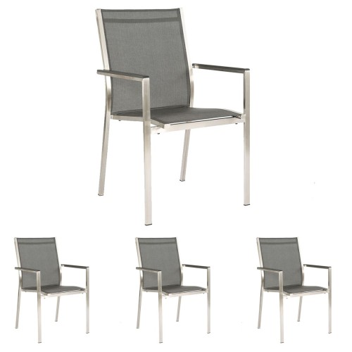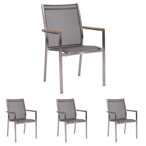 3. 4x Stern Stapelsessel Polaris Edelstahl mit Bezug Textilen silbergrau und Teakarmlehnen FSC®-zertifiziert