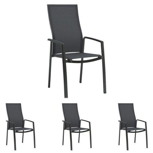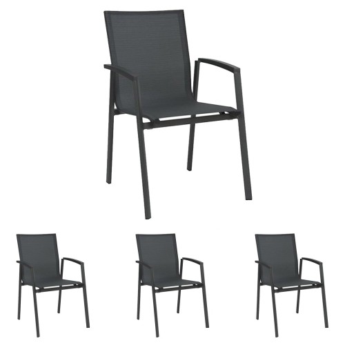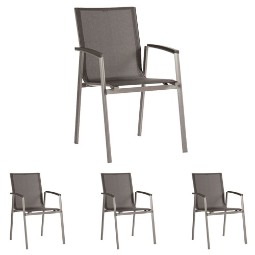 16. 4x Stern KARI Stapelsessel hoch Aluminium anthrazit mit Textilenbezug karbon und Aluminiumarmlehnen anthrazit