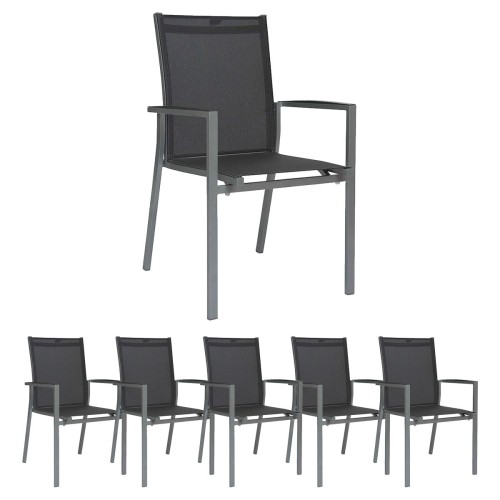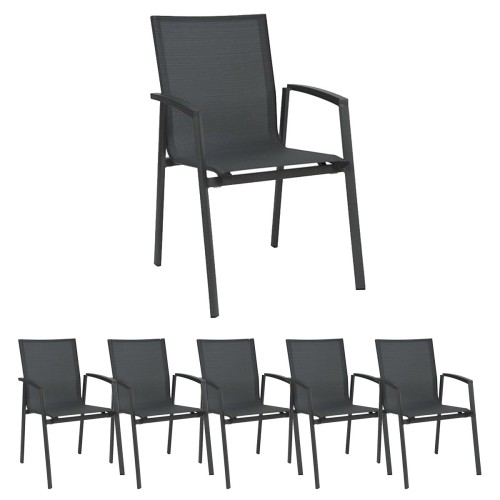 17. 6x Stern KARI Stapelsessel hoch Aluminium anthrazit mit Textilenbezug karbon und Aluminiumarmlehnen anthrazit