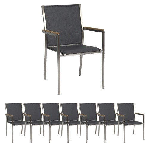 5. 8x Stern Stapelsessel Polaris Edelstahl mit Bezug Textilen silbergrau und Teakarmlehnen FSC®-zertifiziert