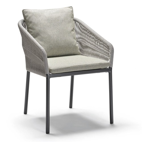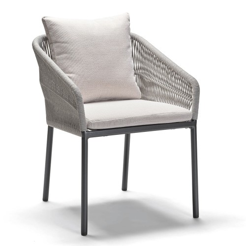 21. Stern Stapelsessel Jella Aluminium anthrazit matt Kordel Stone Kissenset 100% Polyacryl perlgrau