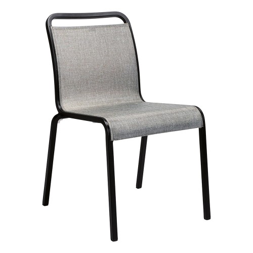 3. Stern Stapelstuhl Oskar Aluminium schwarz matt Textilen Leinen grau