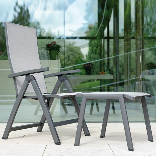 4. Stern Klappsessel New Top Aluminium mit Stapelhocker Allround anthrazit Bezug Textilen silber