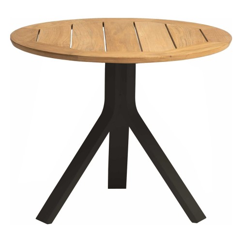 9. Stern Beistelltisch Frida Ø 55 cm Alum. schwarz matt mit Tischplatte Teak