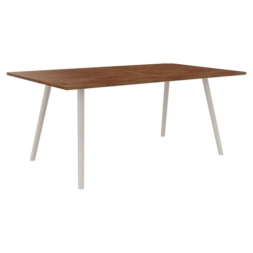 22. Stern Tisch 180x100 cm Interno Rundrohr konisch Aluminium greige Tischplatte Teak