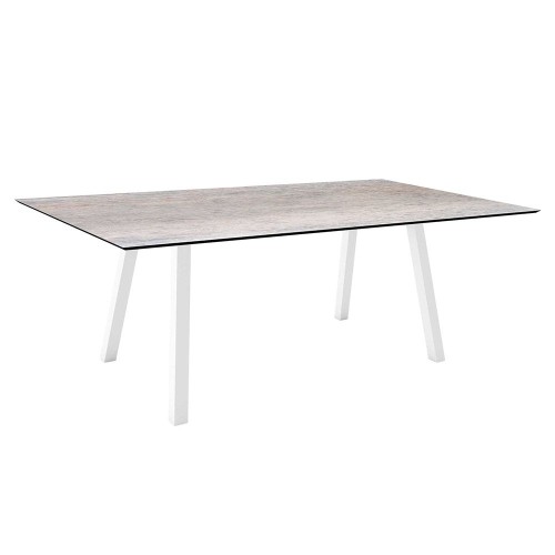 23. Stern Tisch 180x100cm Interno Vierkantrohr Alum.weiß Tischplatte Silverstar 2.0 Zement hell