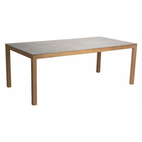 12. Stern Tisch 220x100cm Interno Teak Beine rund konisch Tischplatte Silverstar 2.0 Stone light