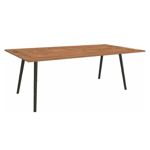 10. Stern Tisch 220x100cm Interno Rundrohr konisch Alum. schwarz matt/Tischplatte Teak