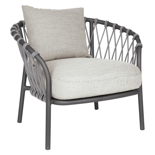 16. Stern Lounge Sessel Klea Aluminium anthrazit matt Kordel Stone Kissenset 100% Polyacryl Vanilla