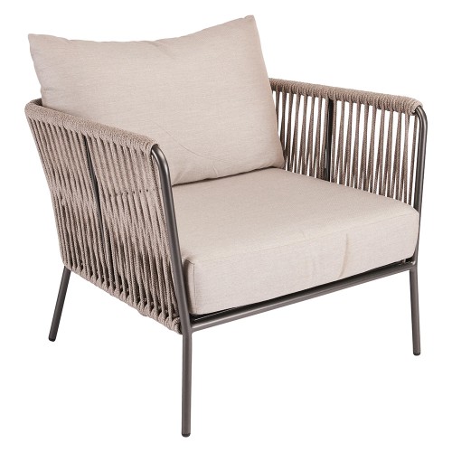 15. Stern Lounge Sessel Klea Aluminium greige Kordel greige Kissenset 100% Polyacryl perlgrau