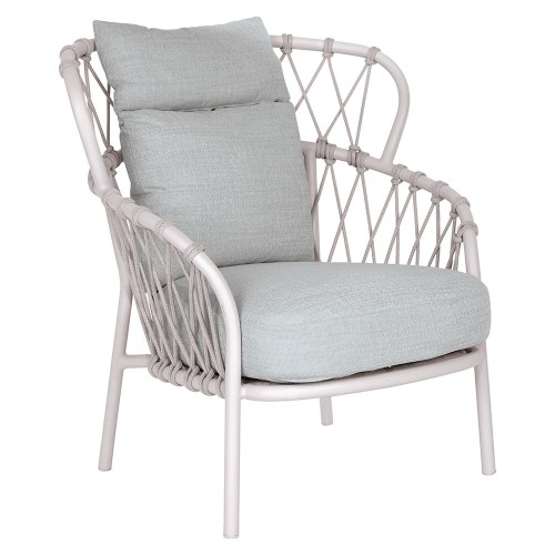 18. Stern Pfauen-Sessel Klea Aluminium greige Kordel greige Kissenset 100% Polyacryl perlgrau