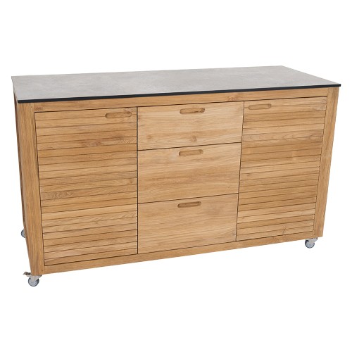 24. Stern Sideboard Elma 3 Schubladen 2 Türen 150x58x88 cm Teak Arbeitsplatte Silverstar Quartz