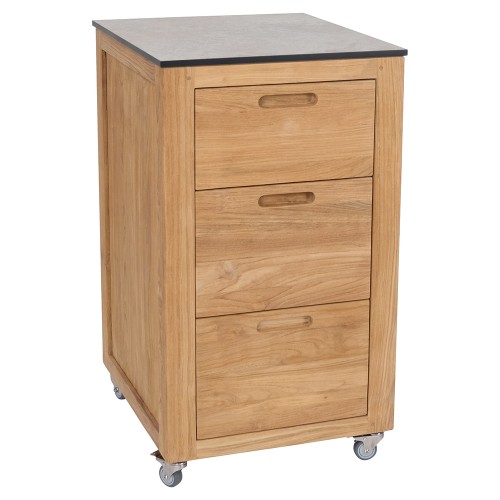 22. Stern Sideboard Elma 3 Schubladen 50x58x88 cm Teak Arbeitsplatte Silverstar Quartz