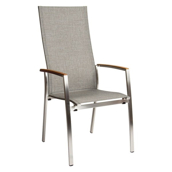 Stern Stapelsessel Mika hoch Edelstahl/Bezug Textilen Leinen grau/Teakarmlehnen FSC®-zertifiziert