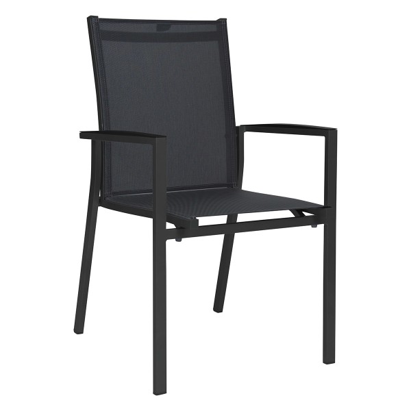 | 6x Stern Stapelsessel New Levanto Gestell Aluminium anthrazit Bezug Textilen karbon 1x Stern Ausziehtisch Alu anthrazit Vierkantrohr 174(214/254)x90x75cm mit Tischplatte Silverstar 2.0, Dekor Metallic grau |