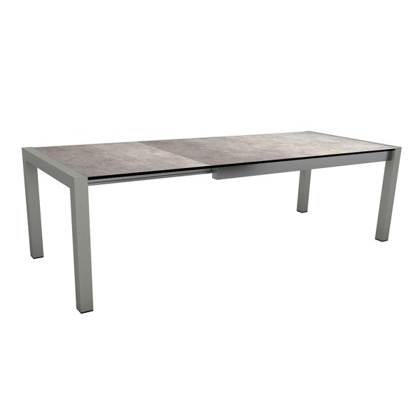 | 8x Stern NEW LEVANTO Stapelsessel graphit mit Textilen silbergrau und Armlehnen anthrazit 1x Stern Ausziehtisch Alu graphit Vierkantrohr 174(214/254)x90x75cm mit Tischplatte Silverstar 2.0, Dekor Metallic grau |
