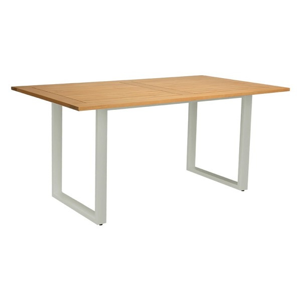 2x Stern Bank Tammo 3-Sitzer Aluminium greige Kordel greige Kissenset 100% Polyacryl Vanilla 1x Stern Kufentisch 180x100 cm Aluminium greige mit Tischplatte Teak