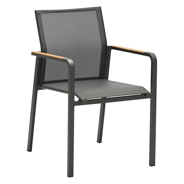 Zebra Stapelsessel Bee Alu-Rahmen pulverbeschichtet graphite, hochwertiges Textilen carbon grey, eigelassene Teakarmlehnen